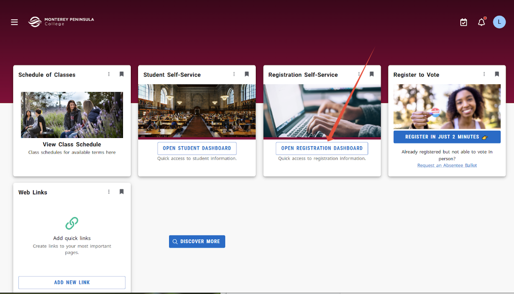 STEP 3: From your MyMPC Portal homepage, find the “Registration Self-Service” card and click the link “Open Registration Dashboard”